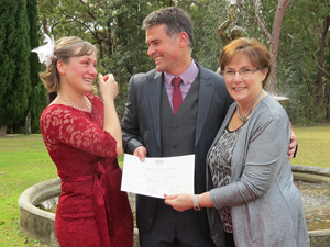 Bronwyn performed our marriage ceremony on the 1/3/14 and I must say that not only is she a consummate professional but she went above and beyond our expectations. You could meet a more caring .. Honest and loving women if you tried. Bronwyn's husband Geoff who was her assistant in the ceremony was also a consummate professional and is of an outstanding and very passive and friendly manner .. A great man indeed. I'd recommend Bronwyn without hesitation .. Bronwyn, Sharon and I think you and Geoff are the very best. Thank you xx