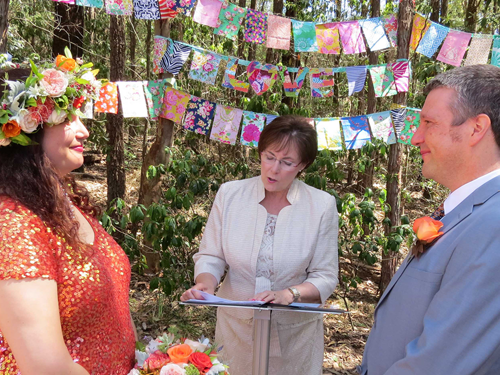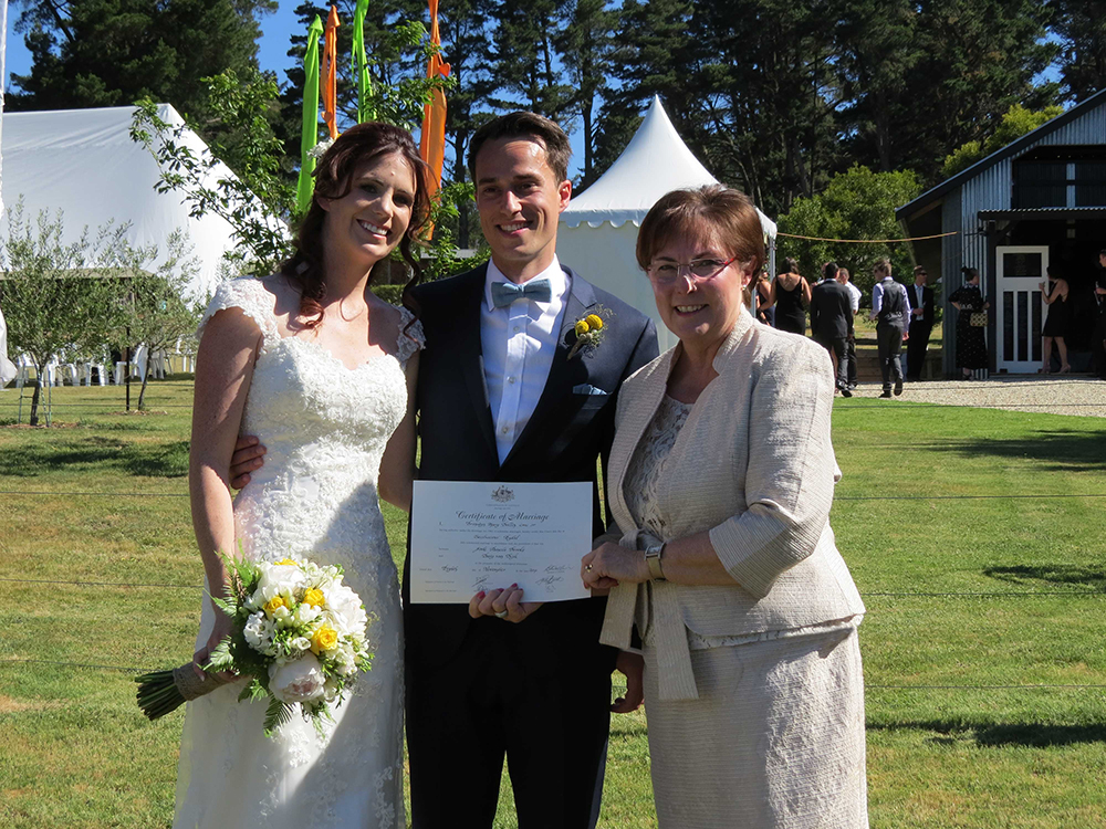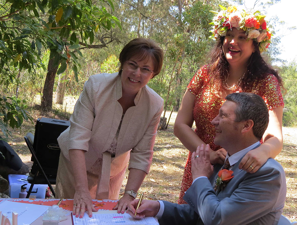 Thank you for officiating at our wedding. Your professional approach coupled with clear communications and great patience and understanding definitely made the ceremony perfect for us. We couldn’t have chosen a more suited celebrant. Thank you and your ‘roadie’ husband Geoff … you are both amazing people.