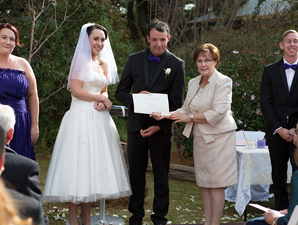 We chose Bronwyn Dollin to be our celebrant for a few reasons, we wanted a more personal service, she looked very well presented and well spoken. More importantly we were having a small family wedding and wanted our vows to be meaningful. On our first meeting Bronwyn sat down with us to talk over what we wanted and offered lots of helpful advice. In the months leading up to our wedding nothing was to much trouble for her. Bronwyn is very professional but also warm and welcoming and in the end helped us achieve a service that suited us perfectly. I would not hesitate to recommend her as your celebrant.